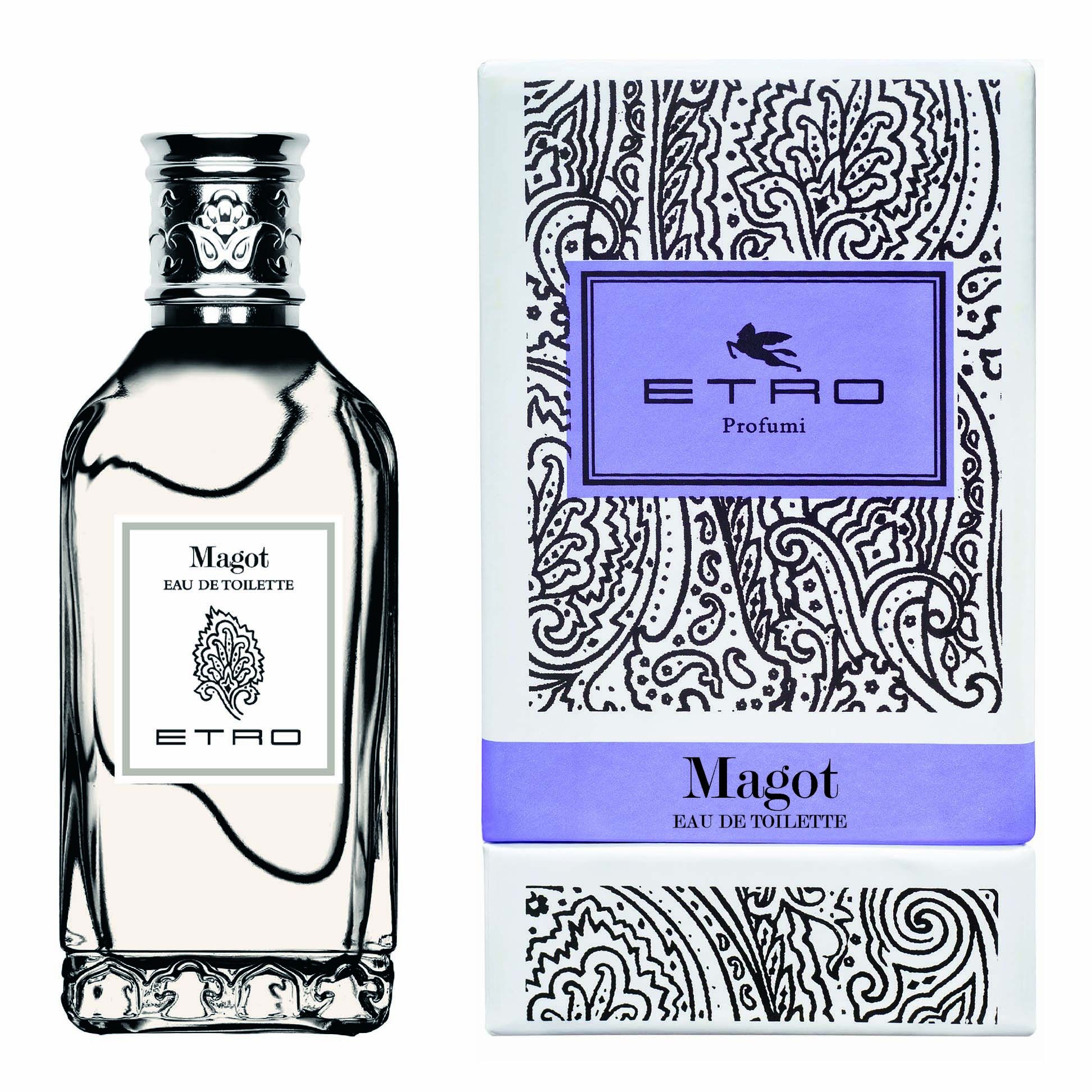Magot di Etro è presente sul mercato dal 1989; appartiene alla famiglia olfattiva legnoso aromatica ed è pensato sia per lei che per lui. E’ una fragranza evocativa dal chiaro gusto orientale, è un fiore sensuale, un broccato prezioso.