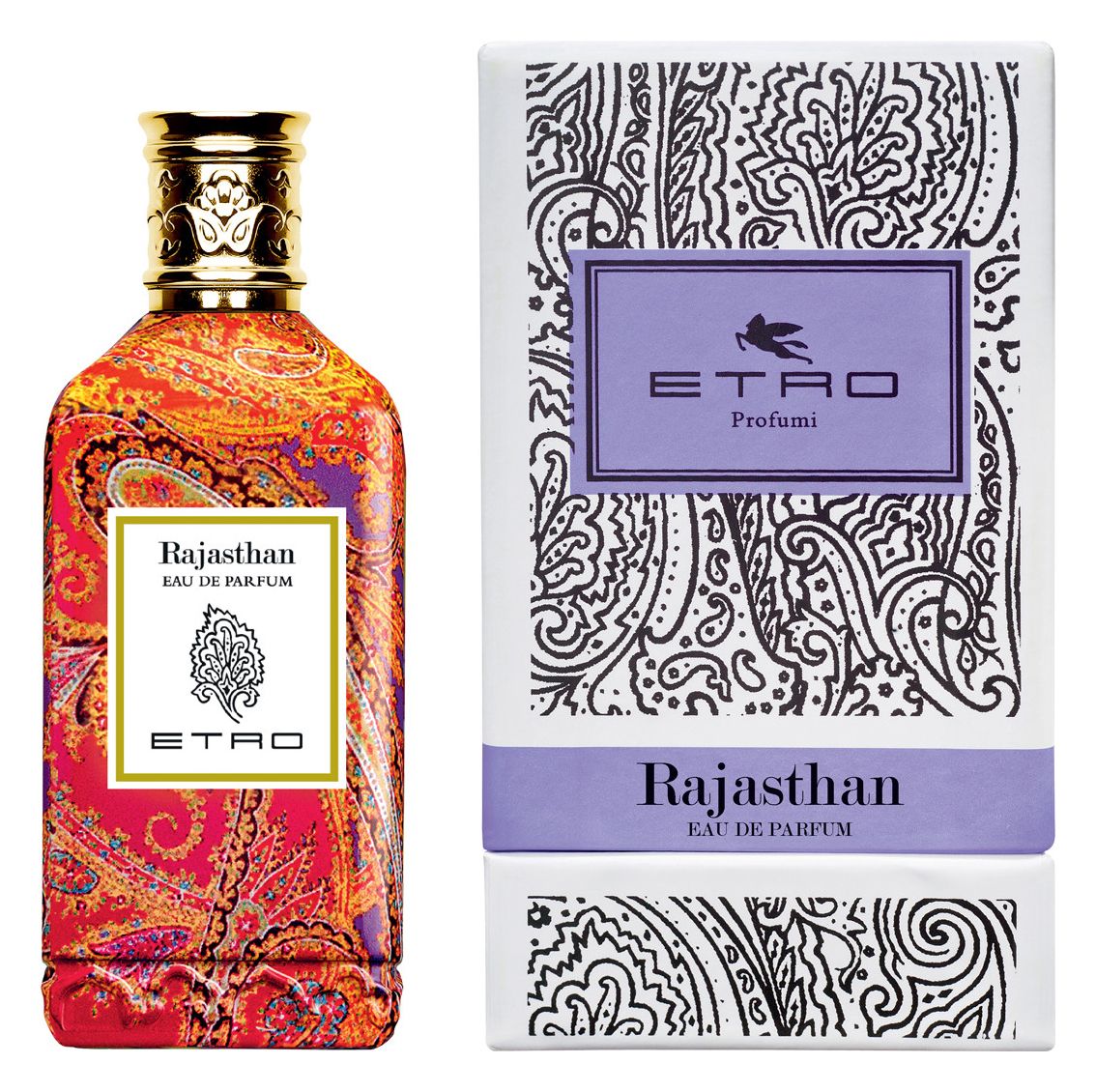 Lanciata per la stagione primavera-estate 2013, Rajasthan Eau de Parfum di casa Etro, è un intreccio di colori bellissimi e luminosi, di tonalità esplosive, alla scoperta dell’Oriente e delle città dei Marajà. La promessa di un’estate fatta di corolle di fiori gialli, vellutati e dolci come il miele.